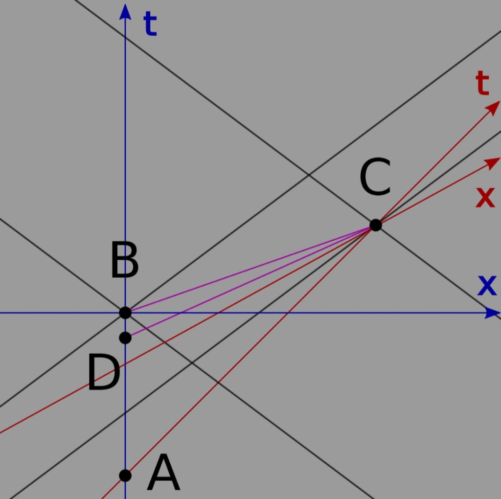 If one of the two events represents the sending of a signal from one location and the second event represents the reception of the same signal at another location, then as long as the signal is moving at the speed of light or slower, the mathematics of simultaneity ensures that all reference frames agree that the transmission-event happened before the reception-event. However, in the case of a hypothetical signal moving faster than light, there would always be some frames in which the signal was received before it was sent so that the signal could be said to have moved backward in time. Because one of the two fundamental postulates of special relativity says that the laws of physics should work the same way in every inertial frame, if it is possible for signals to move backward in time in any one frame, it must be possible in all frames. This means that if observer A sends a signal to observer B which moves faster than light in A’s frame but backwards in time in B’s frame, and then B sends a reply which moves faster than light in B’s frame but backwards in time in A’s frame, it could work out that A receives the reply before sending the original signal, challenging causality in every frame and opening the door to severe logical paradoxes. This is known as the tachyonic antitelephone.